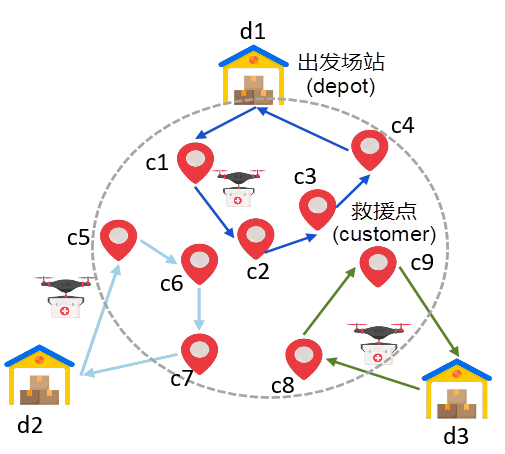 项目名称:基于大规模分治策略的多场站无人机应急救援优化方法