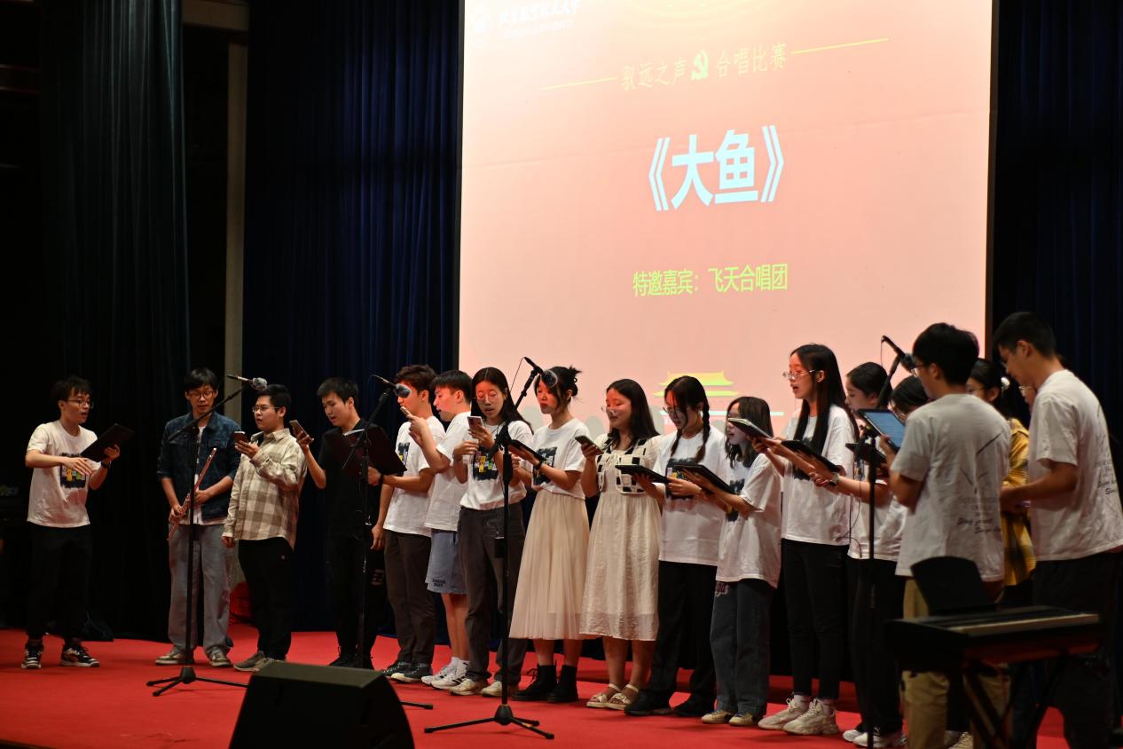 参赛班级进行演唱赛程告一段落后,看球网站 飞天合唱团作为此次比赛的特邀嘉宾,为大家带来了合唱《大鱼》和笛子独奏《红蜻蜓》。这不仅仅是音乐的展演,更是一场跨越时空的情感交流,所有观众为之沉醉与感动。在登台的合唱团成员中,多数都担任了本次比赛的指导老师,负责班级曲目的指导和编排。他们用自己的热爱和努力帮助每一个班级“从零起步”,让更多同学了解合唱,爱上合唱。