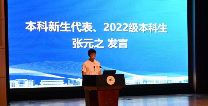 新本科生新生张元之与研究生新生陶怡然分别上台发言。他们以自身经历告诉大家:应该“努力拼搏、坚定信念、付出努力、学会坚守”,无论在什么样的情况下,我们都应该保持良好的心境。