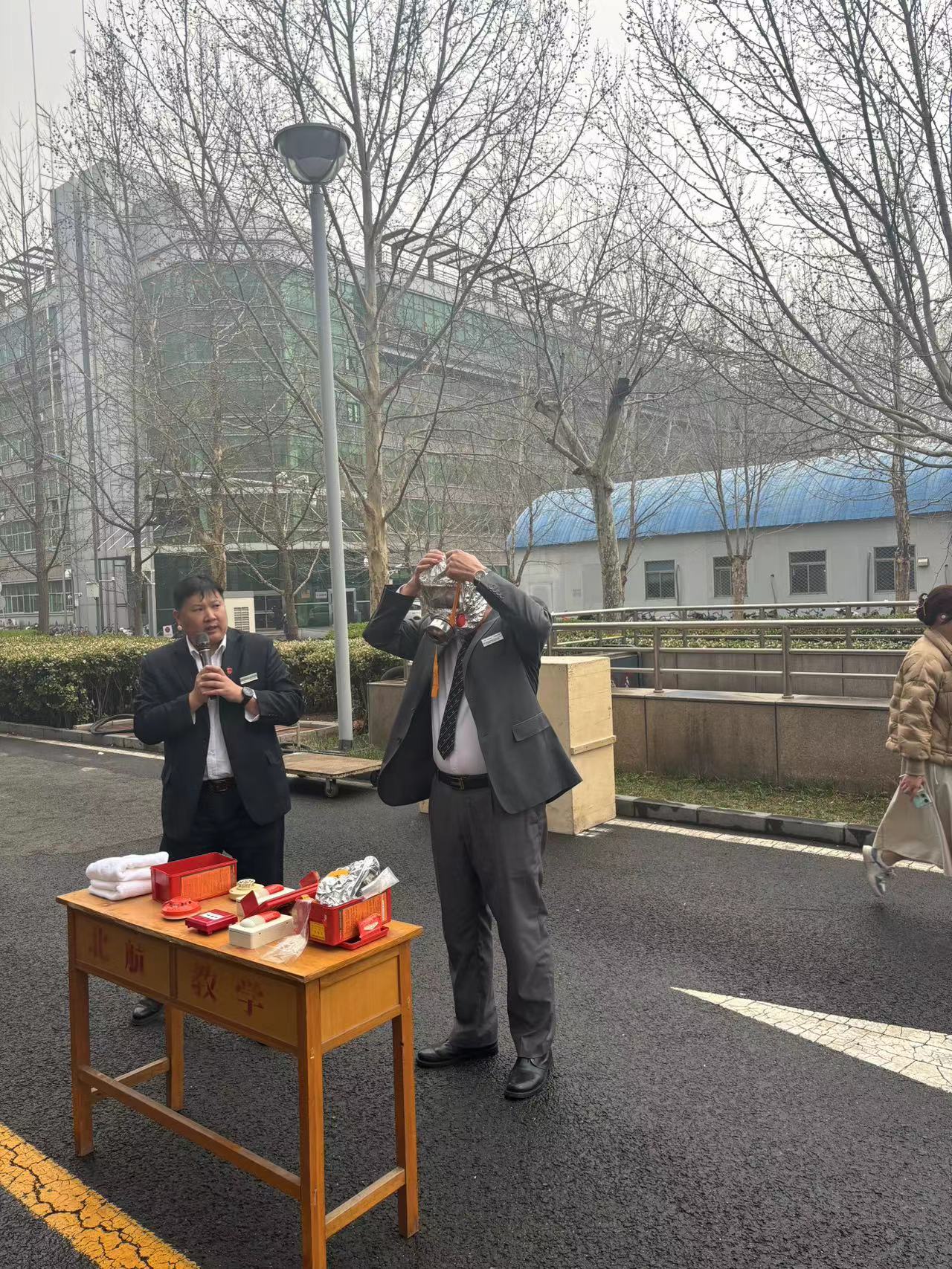 应急疏散演练结束后,全体师生参加了新主楼物业组织的消防安全培训。物业王剑详细讲解了消防设备常识,灭火器的正确使用方法和步骤、适用范围及操作时的注意事项,并现场进行了示范。在专业人员的指导下,师生们积极踊跃地依次亲自上手进行了灭火器的实操演练,进一步巩固了消防安全知识,提高了实战技能。
