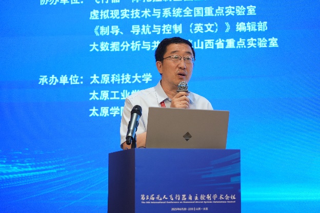 院长崔志华教授主持。我院段海滨教授代表主办单位致辞,对各位专家和代表莅临太原参加本次会议表示热烈欢迎,指出该会议自创办以来,一直紧密面向国家需求,对无人飞行器系统自主控制领域的前沿问题和颠覆性技术进行深度研讨,为国内各行业的无人飞行器研究者打造了一个定位高端、突出前沿、学研合作、协同共赢的“头脑风暴平台”。太原科技大学校长梁卫国教授代表承办单位致辞,太原科技大学是新中国设立的第一所重型机械本科院校,也是我国重大技术领域重要的人才培养和科学研究基地,学校在控制、电子信息技术、计算机等学科领域实力雄厚,注重科教融汇、产教融合,不断汇聚海量优质资源,通过创新体制机制、引进学科高端人才、打造高水平师资团队等系列举措,构建学校新质学科生态体系。他相信此次会议必将通过学术交流、智慧碰撞,共同推进无人飞行器新质自主控制在低空经济等领域的高质量发展。