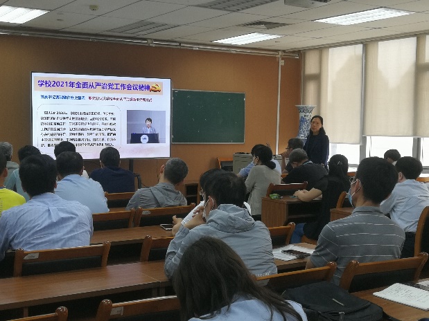接着王少萍书记给全体党员宣贯了学校2021年全面从严治党工作会议精神,分别传达了校党委书记曹淑敏、校长徐惠彬与校党委副书记、纪委书记何新洲的讲话精神,重点解读了校党委书记曹淑敏指出的几点要求,要准确把握全面从严治党新部署新要求,充分认识学校全面从严治党新形势新挑战,扎实做好2021年全面从严治党的各项工作。要努力把全面从严治党的成果,转化为为促进看球网站
