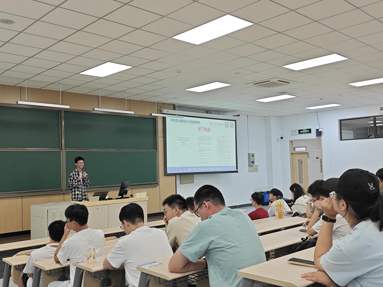 入学教育系列活动之朋辈经验分享会。本次活动邀请了陈铭良、孙孟旭、张元之三位优秀学长担任主讲人,围绕课程建议、竞赛科研心得、时间管理技巧、志愿实践文艺经历等展开分享,吸引24级本科新生积极参与。