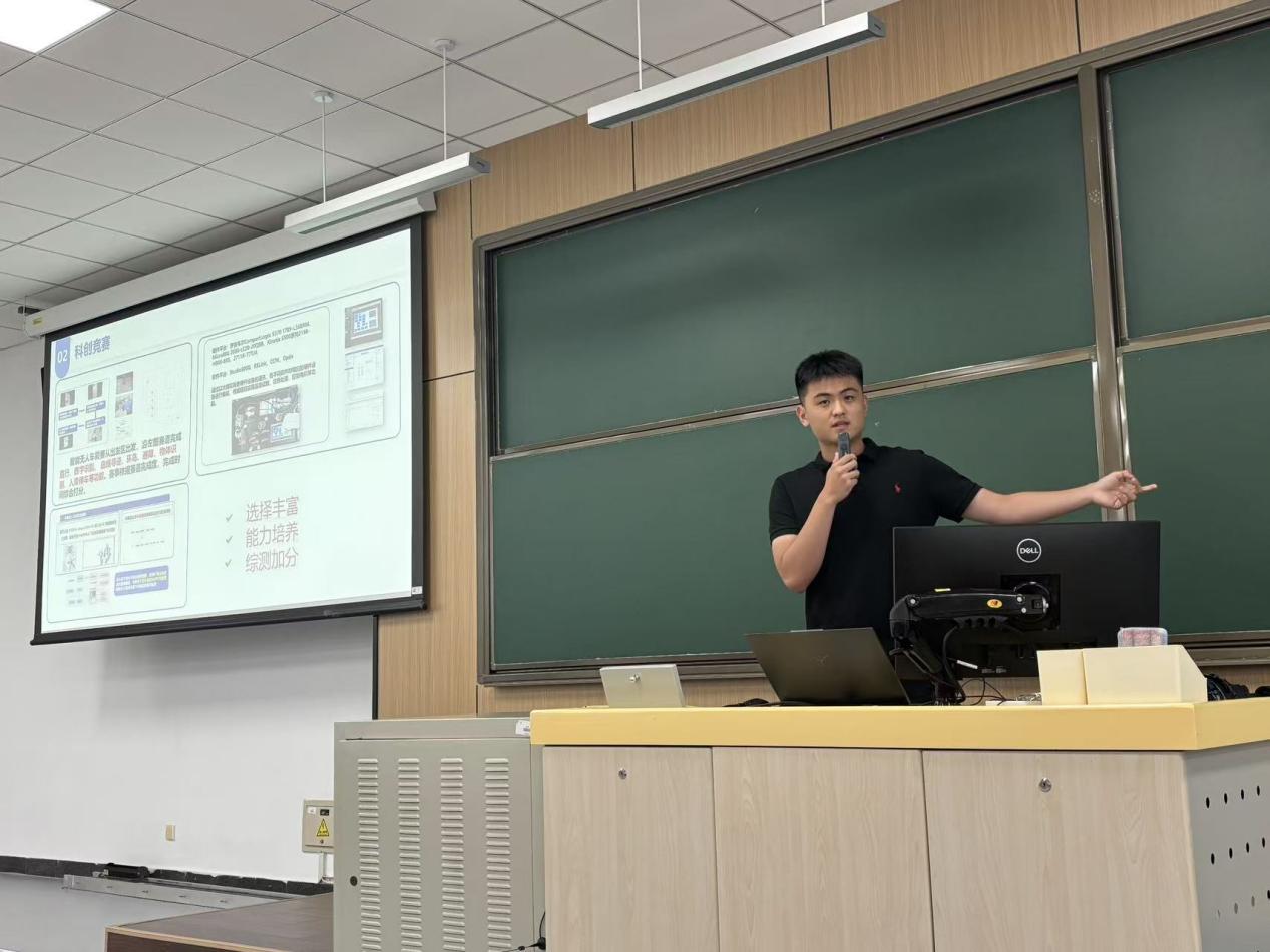 孙孟旭学长则聚焦课程学习与竞赛科研展开分享。科创竞赛方面,孙学长以他参加“卓翼杯”的经验为例,讨论竞赛在综测加分之余对于个人能力的培养与提升。在进组科研方面,他结合自身经验给出实用建议:主动通过看球网站